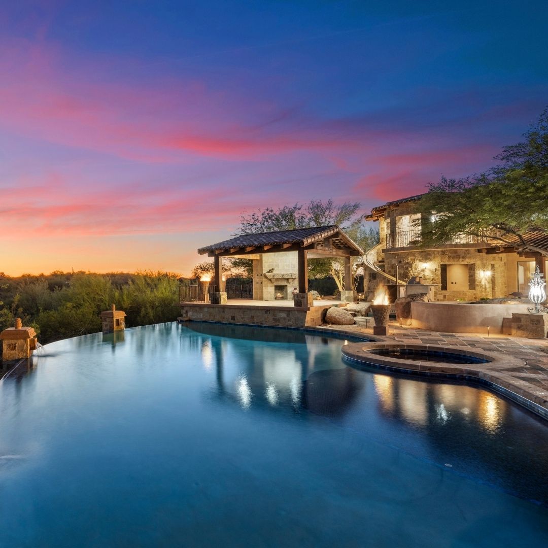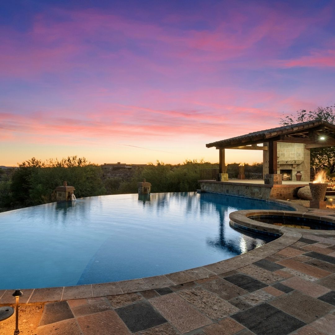 The negative-edge pool serves as the crown jewel of this estate’s resort-style grounds. Designed to create a visual illusion of water extending into the horizon, it perfectly mirrors the vast Arizona sky. Whether you are swimming laps or enjoying a sunset cocktail, the pool offers a tranquil escape that defines the high-end Monte Vista Ranch lifestyle.