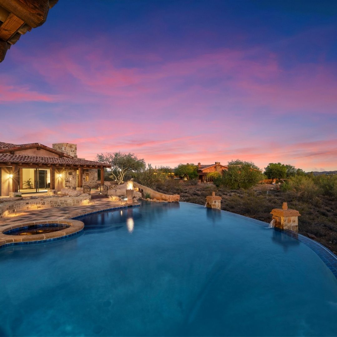Why visit a five-star resort when the ultimate lazy river and negative-edge pool are part of your private backyard? At this Monte Vista Ranch estate, K&C Realty presents an outdoor sanctuary that rivals the world’s most exclusive destinations. This Wickenburg real estate masterpiece transforms your grounds into a personal paradise designed for relaxation and sophisticated desert entertainment.